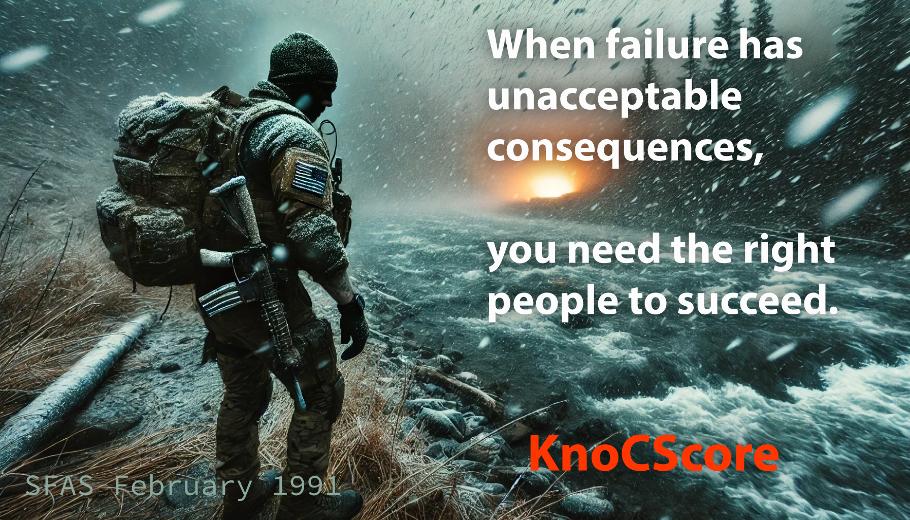 When failure has unacceptable consequences, you need the right people to succeed. From its origins in the OSS during WWII, Special Forces has a long history of selecting individuals that will succeed despite the danger and difficulty of the missions they may be assigned. KnoCSCore derives its roots from these lessons. Written from one of the many stories that are at the heart of KnoCScore.